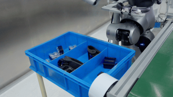 基于强化学习训练的视觉识别方案与抓取策略,机器人在物料箱中识别并分离目标物体,并自动计算抓取方向与接触点,生成可执行的抓取位姿完成任务。