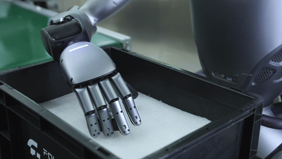 分拣流水线上所配置的 GRx 机器人统一搭载由傅利叶自研的 12 自由度灵巧手,指尖配备阵列式触觉传感器——如同为机械臂装上 “触觉神经”——可实时监测接触压力与摩擦变化,并动态调整抓取力度以适应不同尺寸和材质的物体。