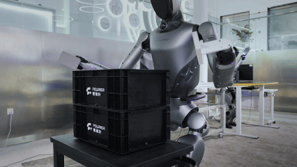 在作业过程中,系统先进行远距离快速锁定,确定目标的大致位置;接近目标后,通过视觉标识精确校准,保证抓取操作的可靠性。结合自研运控算法,机器人可自主调整重心与姿态,在负载搬运过程中保持高稳定性和顺畅性。